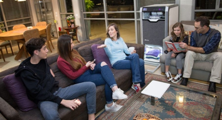 Nexoria™ vereint Technologie und Ästhetik. Dank seines schlichten und kompakten Designs lässt er sich leicht in Ihren Waschraum, Ihr Schlafzimmer oder sogar Ihr Wohnzimmer integrieren. Er nimmt nicht viel Platz ein und verleiht Ihrem Interieur einen modernen Touch, während er Ihren Alltag praktischer und organisierter macht.