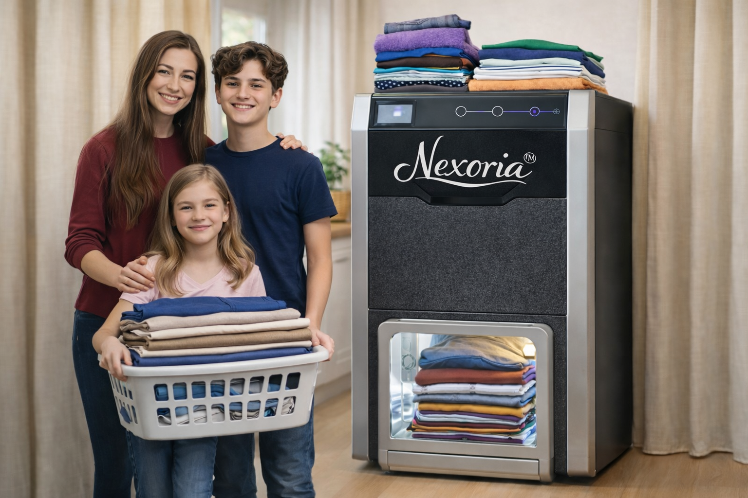 Früher habe ich jede Woche stundenlang Wäsche gefaltet. Seit ich Nexoria™ habe, ist alles in wenigen Minuten gefaltet. — Endlich kann ich meine Zeit für etwas anderes nutzen.
