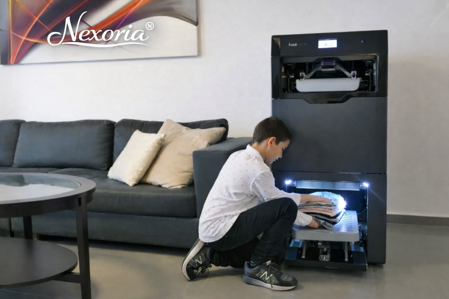 Nexoria™ ist mehr als nur eine Maschine, es ist eine innovative Lösung, die Effizienz, Funktionalität und modernes Design vereint. Kompakt und elegant fügt es sich in jeden Raum ein und sorgt gleichzeitig für einen reibungslosen und organisierten Alltag.
